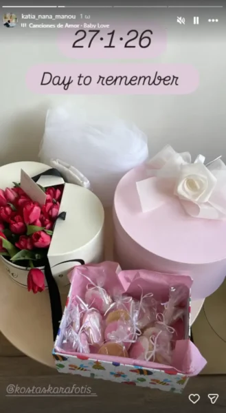 Η κόρη του Κώστα Καραφώτη και της Κάτιας Μάνου γεννήθηκε την Τρίτη, με τη σύζυγο του τραγουδιστή να δημοσιεύει ένα στιγμιότυπο στο Instagram σημειώνοντας: «27/1/26, ημέρα που θα θυμάμαι», ενώ σε άλλη φωτογραφία, που αναδημοσίευσε, εμφανίζεται χαμογελαστή στο μαιευτήριο.