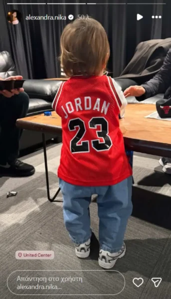 Σε ανάρτηση που έκανε η Αλεξάνδρα Νίκα στα social media απαθανατίζει τον γιο της στα αποδυτήρια του σταδίου στο Σικάγο όπου τραγούδησε ο σύζυγός της, και όπως βλέπουμε από το στιγμιότυπο, ο μικρός Βασίλης φόρεσε ασορτί μπλούζα με τον πατέρα του, με την εικόνα να αποπνέει αγάπη και τρυφερότητα.