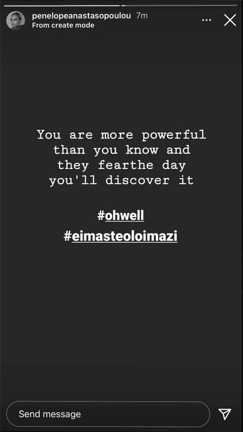 Λίγη ώρα μετά την ανακοίνωση, μια ανάρτηση της Πηνελόπης Αναστασοπούλου προκάλεσε ερωτήματα: «Είσαι πιο ισχυρή από ό,τι γνωρίζεις και φοβούνται τη μέρα που θα το ανακαλύψεις».