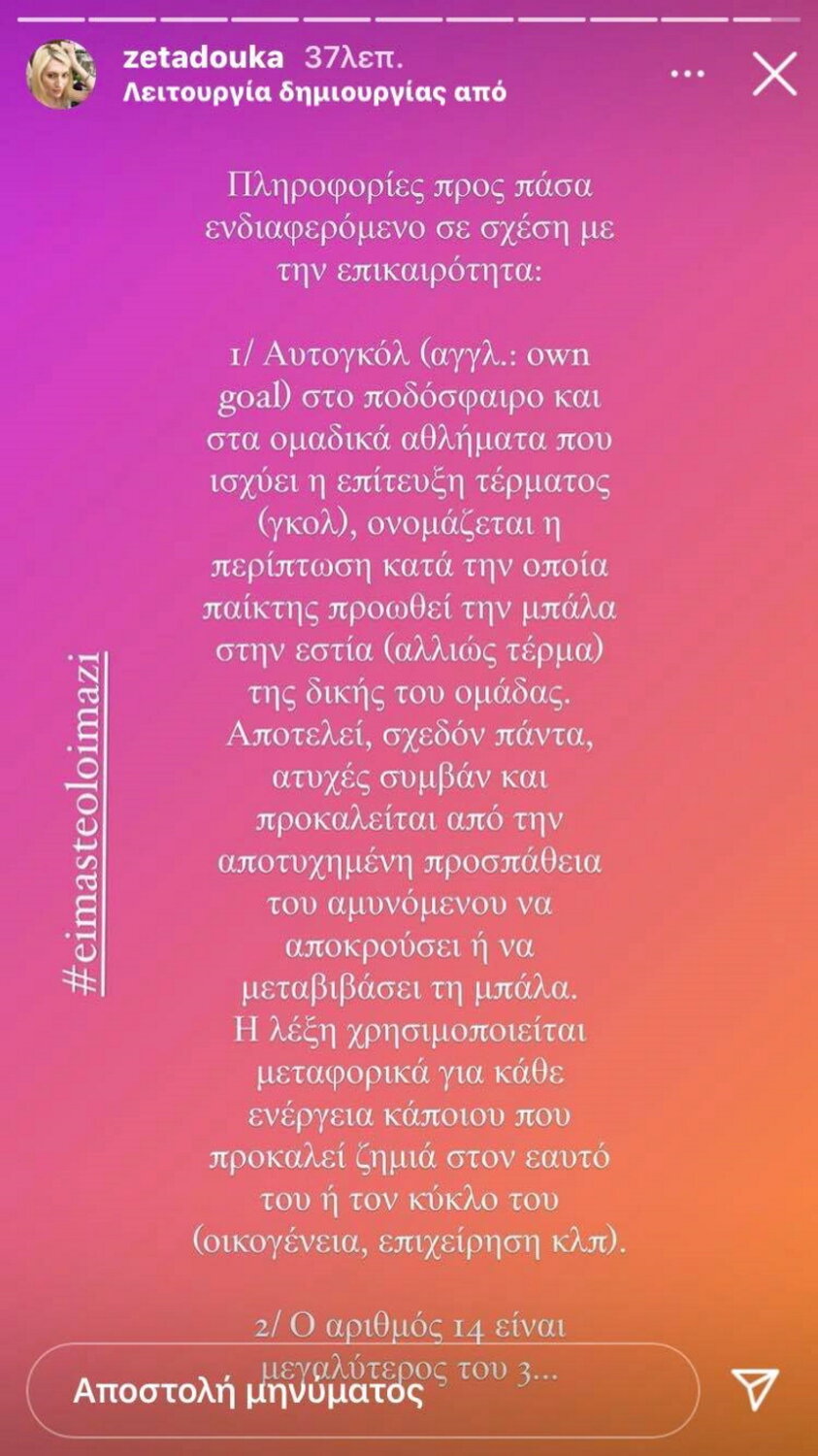 Η Ζέτα Δούκα, από την μεριά της, σχολιάζει στο Instagram: