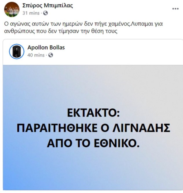«Ο αγώνας αυτών των ημερών δεν πήγε χαμένος. Λυπάμαι για ανθρώπους που δεν τίμησαν τη θέση τους» σχολίασε ο Σπύρος Μπιμπίλας.