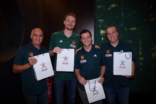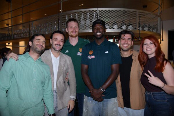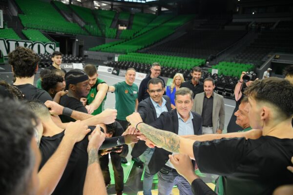 Ergin Ataman, προπονητής Παναθηναϊκού AKTOR, Γιάννης Πανόπουλος, OPAP Chief Online Officer, Οδυσσέας Χριστοφόρου, Αναπληρωτής Διευθύνων Σύμβουλος ΟΠΑΠ, Φώτης Ζησιμόπουλος, Chief Sales & Marketing OPAP Stores Officer, και Lukas Antos, OPAP Chief Customer Officer, με την ομάδα του Παναθηναϊκού AKTOR
