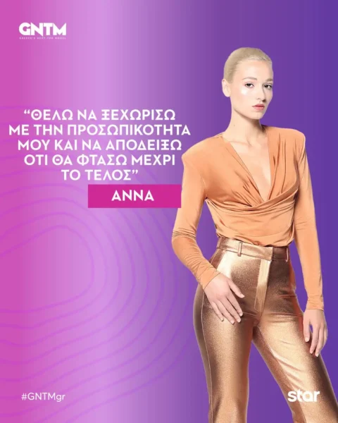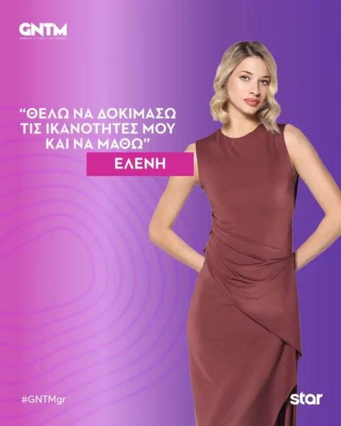 να λειτουργεί με πειθαρχία και συγκέντρωση, ακόμα και υπό πίεση. Συμμετέχει στο GNTM 2025 με στόχο να εξελιχθεί, να ξεχωρίσει και να φτάσει μέχρι τον τελικό. Δεν κυνηγάει απλώς το όνειρό της, το χτίζει βήμα -βήμα, με στοχοπροσύλωση, σκληρή δουλειά και πίστη στον εαυτό της.