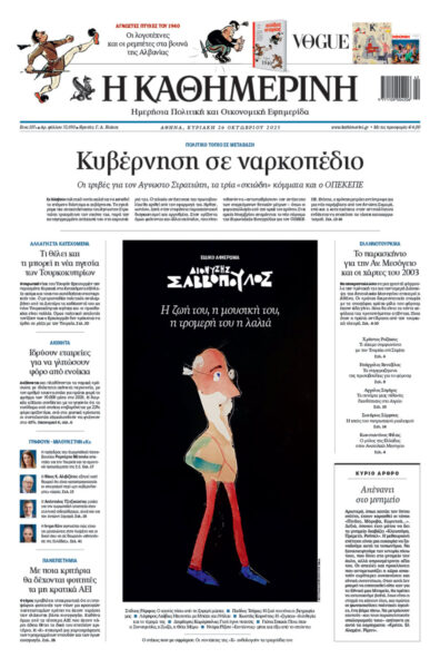 Με κεντρικό τίτλο «Κυβέρνηση σε ναρκοπέδιο – Οι τριβές για τον Αγνωστο Στρατιώτη, τα τρία «σκιώδη» κόμματα και ο ΟΠΕΚΕΠΕ», κυκλοφορεί αυτή την Κυριακή 26 Οκτωβρίου 2025 , η «Καθημερινή».