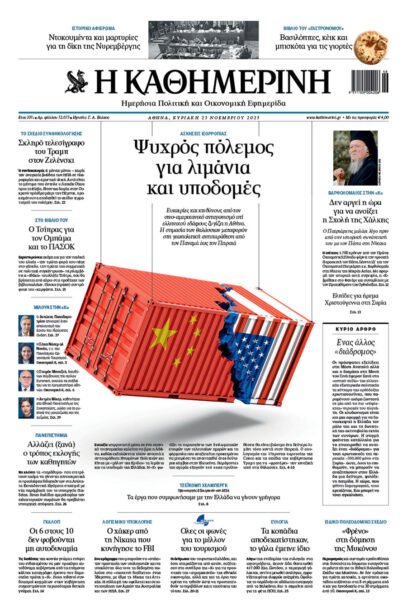 Με κεντρικό τίτλο “Ψυχρός πόλεμος για λιμάνια και υποδομές – Ασκήσεις ισοροπίας» – Ευκαιρίες και κινδύνους από τον σινο-αμερικανικό ανταγωνισμό επί ελληνικού εδάφους ζυγίζει η Αθήνα. Η σημασία των θαλάσσιων μεταφορών στη γεωπολιτική αντιπαράθεση από τον Παναμά έως τον Πειραιά, κυκλοφορεί αυτή την Κυριακή 23 Νοεμβρίου 2025 η «Καθημερινή».