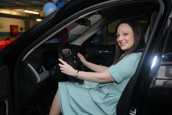 Η νικήτρια Α. Δημητρίου με το αυτοκίνητο που κέρδισε στον διαγωνισμό για τα 5 χρόνια του live casino του Pamestoixima.gr