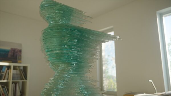 Αναλύει τη σχέση του με την κυρίαρχη πρώτη ύλη στα έργα του, το γυαλί, «ένα κοντέινερ χώρου, μια ψευδαίσθηση χρόνου», αλλά και την εσωτερική του ανάγκη να ξαναφέρνει τον χρόνο πίσω μέσα από την ύλη. Θυμάται το έργο Ποιητής, τις πρώτες του δημιουργίες σε Ελλάδα και Ιταλία, αλλά και τον εμβληματικό Δρομέα, ένα γλυπτό που αμφισβητήθηκε από το κατεστημένο της τέχνης, αλλά αγαπήθηκε από τους Αθηναίους.