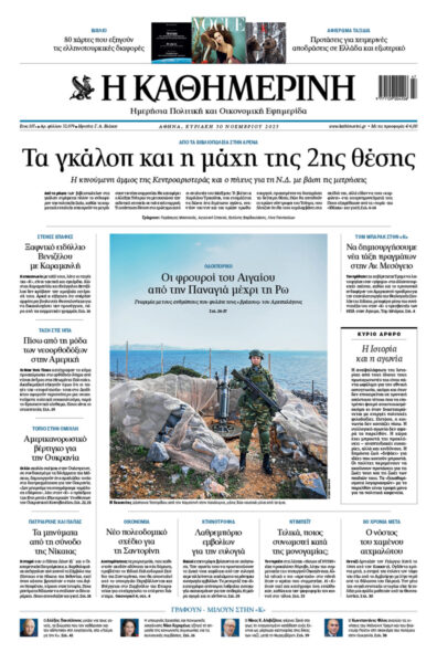 Με κεντρικό τίτλο «Τα γκάλοπ και η μάχη της 2ης θέσης» κυκλοφορεί αυτή την Κυριακή, 30 Νοεμβρίου 2025, «Καθημερινή».