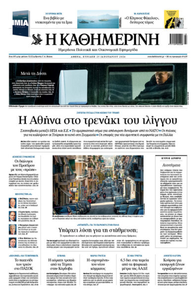 Με κεντρικό τίτλο «Η Αθήνα στο τρενάκι του ιλίγγου» – «Ζητείται πυξίδα στον κόσμο του Τραμπ», κυκλοφορεί αυτή την Κυριακή 25 Ιανουαρίου 2026 , η «Καθημερινή».