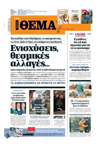 Με κεντρικό τίτλο «Ενισχύσεις, θεσμικές αλλαγές …Προετοιμασία για κάλπες από το φθινόπωρο και μετά», κυκλοφορεί εκτάκτως το Μεγάλο Σάββατο, 11 Απριλίου 2026, το «Πρώτο Θέμα».