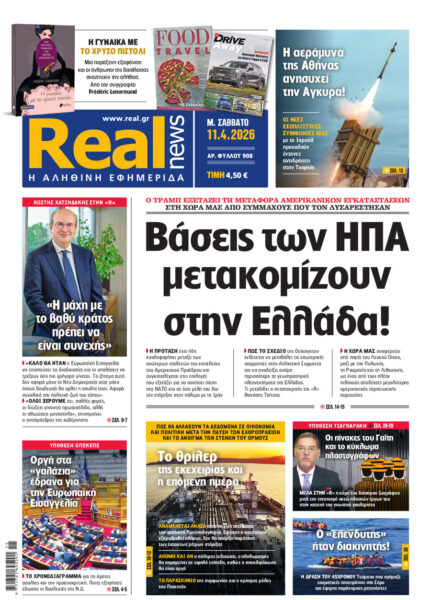 Με κεντρικό τίτλο ««Βάσεις των ΗΠΑ μετακομίζουν στην Ελλάδα!”, κυκλοφορεί εκτάκτως το Μεγάλο Σάββατο, 11 Απριλίου 2026 , η «Real news».