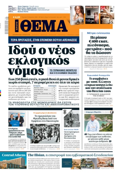 Με κεντρικό τίτλο «Ιδού ο νέος εκλογικός νόμος» – «Τώρα προτάσεις, στην επόμενη Βουλή αποφάσεις», κυκλοφορεί αυτή την Κυριακή 19 Απριλίου 2026 το «Πρώτο Θέμα».