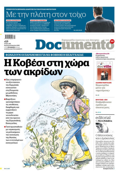 Με κεντρικό τίτλο «Η Κοβέτσι στη χώρα των ακρίδων» – «Φωνάζουν οι παράνομοι για να φοβηθεί η εισαγγελέας», κυκλοφορεί αυτή την Κυριακή 26 Απριλίου 2026, το «Documento».