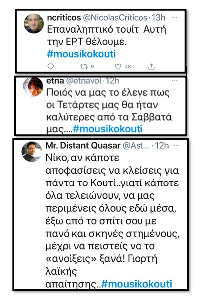 Ξεσηκώθηκε το Twitter, να δεσμευτεί ο Νίκος (που είναι online και τουιτάρει εκείνη τη στιγμή) ότι η εκπομπή θα συνεχιστεί του χρόνου, ότι πρέπει να κάνουν συναυλία, δίσκο, και παρέα μαζί μας με κάθε τρόπο. Το κοινό του Κουτιού αγκάλιασε και τον ταλαντούχο Χρήστο Μάστορα από τις ΜΕΛΙSSES στο «Κύμα» ή στο «Είμαι Αλλού» και τον αποθέωσε στις ξένες διασκευές όπως το «RareGroove» του StevieWonder ή το «Imagine» του Lennon.