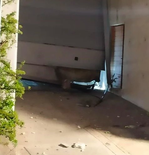 Από την έκρηξη προκλήθηκαν ζημιές στην πόρτα του γκαράζ και σε ένα όχημα.