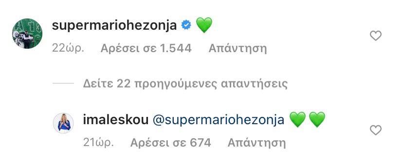 Η παρουσιάστρια ανήρτησε μια φωτογραφία στο Instagram από τη συνέντευξή της στην τηλεοπτική εκπομπή και ο Κροάτης φόργουορντ σχολίασε με μια πράσινη καρδιά. Από τη μεριά της, η Ιωάννα Μαλέσκου απάντησε από την πλευρά της με δύο πράσινες καρδιές!