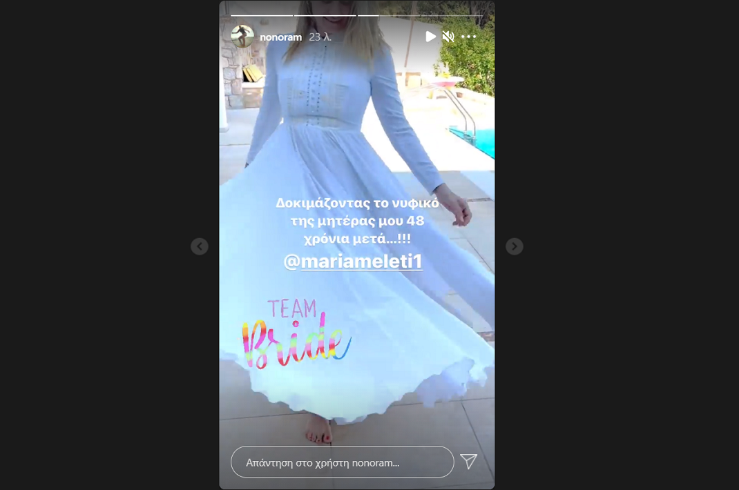 «Δοκιμάζοντας το νυφικό της μητέρας μου 48 χρόνια μετά» έγραψε η Ελεονώρα Μελέτη.