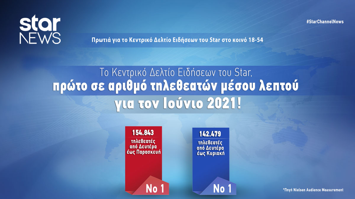 Συγκεκριμένα, από τις 01/9/2020 έως και τις 29/6/2021, το Κεντρικό Δελτίο Ειδήσεων του Star, στο δυναμικό κοινό ηλικίας 18 έως 54 ετών, ήταν πρώτο σε αριθμό τηλεθεατών μέσου λεπτού, που είναι και ο μόνος σωστός τρόπος σύγκρισης δελτίων, τα οποία μεταδίδονται σε διαφορετικές ώρες, από Δευτέρα έως Παρασκευή, με 220.768 τηλεθεατές μέσου λεπτού.