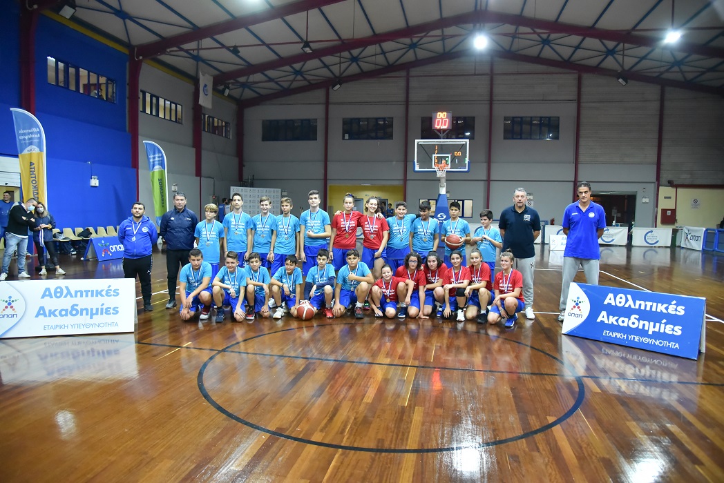 Κώστας Τσάνας και Ηλίας Παπαθεοδώρου με τα παιδιά των Αθλητικών Ακαδημιών ΟΠΑΠ