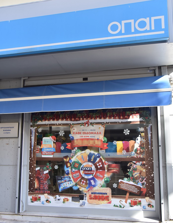 Η χριστουγεννιάτικη βιτρίνα στο κατάστημα ΟΠΑΠ του κ. Καραμάνη στο Αιγάλεω