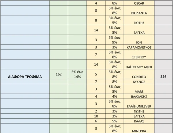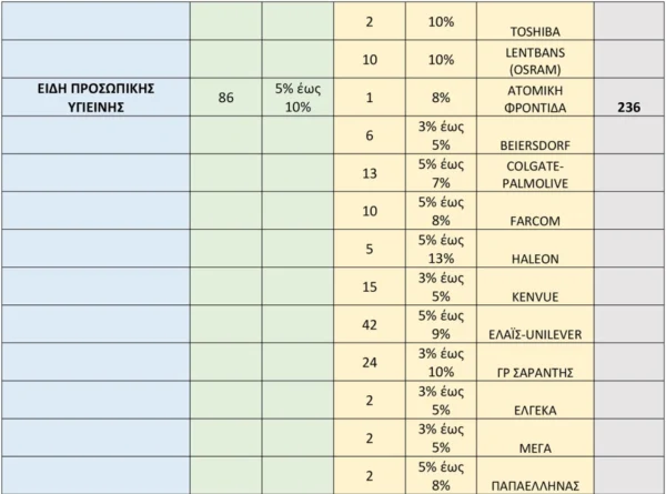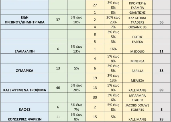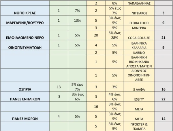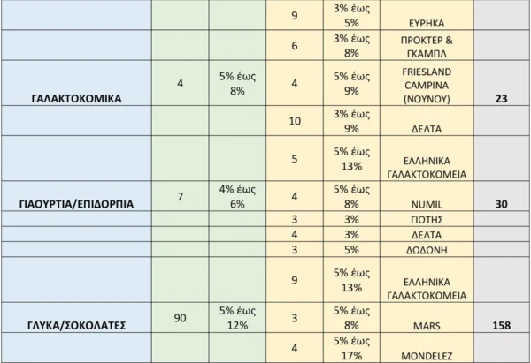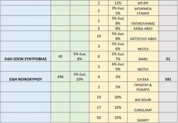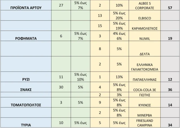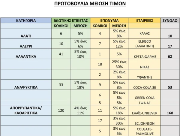 Δείτε αναλυτικά τη λίστα με τα προϊόντα και τις μειώσεις: