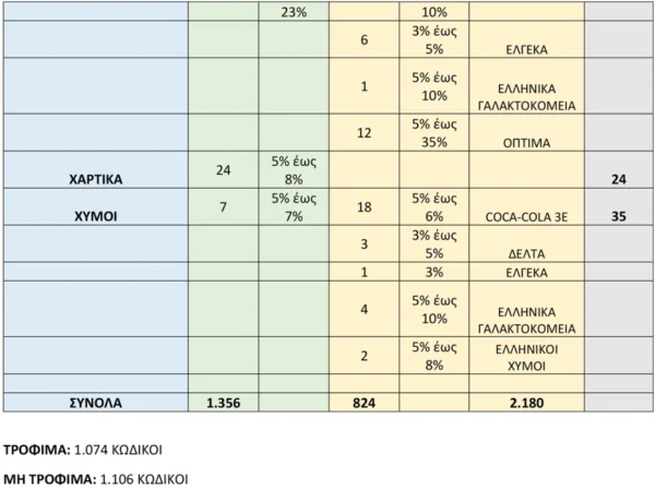 Πρόκειται για 1074 κωδικούς που αφορούν τρόφιμα και 1.106 κωδικούς από άλλες κατηγορίες προϊόντων.