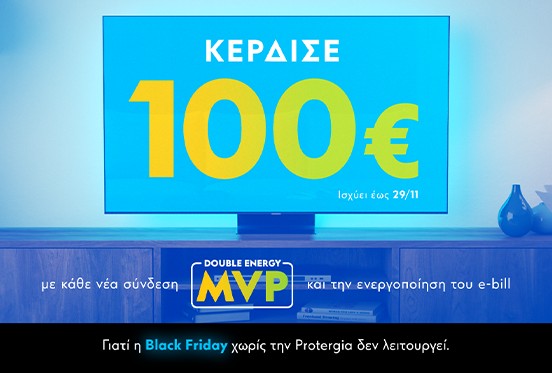 Από τις 26 έως τις 29 Νοεμβρίου, όλοι μπορούν να κερδίσουν 100€ στον πρώτο τους λογαριασμό με κάθε νέα σύνδεση Double Energy MVP, για ρεύμα και φυσικό αέριο, με την ενεργοποίηση e-bill.