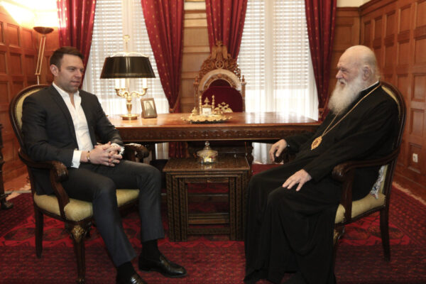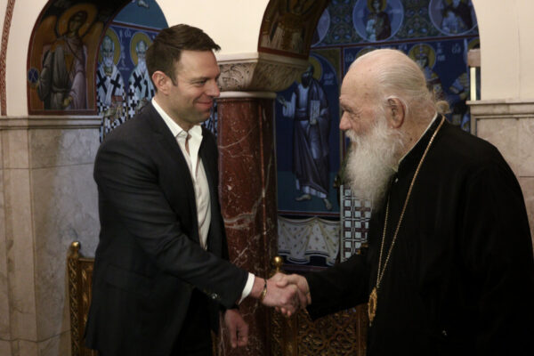 Ολοκληρώθηκε η πρώτη συνάντηση του Στέφανου Κασσελάκη με τον Αρχιεπίσκοπο Αθηνών, κ.κ. Ιερώνυμο στην Αρχιεπισκοπή, στην Πλάκα.