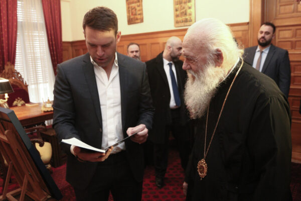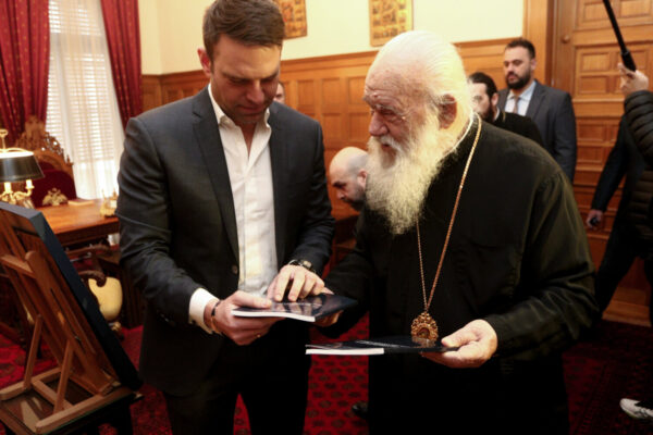 Ολοκληρώθηκε η πρώτη συνάντηση του Στέφανου Κασσελάκη με τον Αρχιεπίσκοπο Αθηνών, κ.κ. Ιερώνυμο στην Αρχιεπισκοπή, στην Πλάκα.