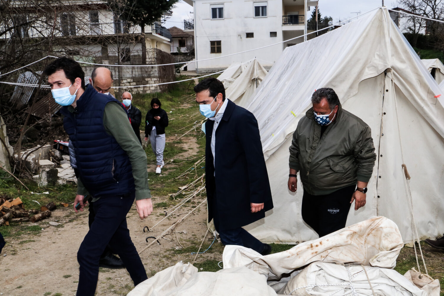 Ο πρόεδρος του ΣΥΡΙΖΑ έφτασε στο Δαμάσι, στο πλαίσιο της επίσκεψής του στις σεισμόπληκτες περιοχές.