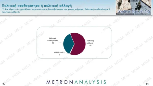 Το αφήγημα της πολιτικής σταθερότητας έχει μειωμένη απήχηση (36%) ενώ οι πολίτες ζητούν με συντριπτική πλειοψηφία πολιτική αλλαγή (63%).