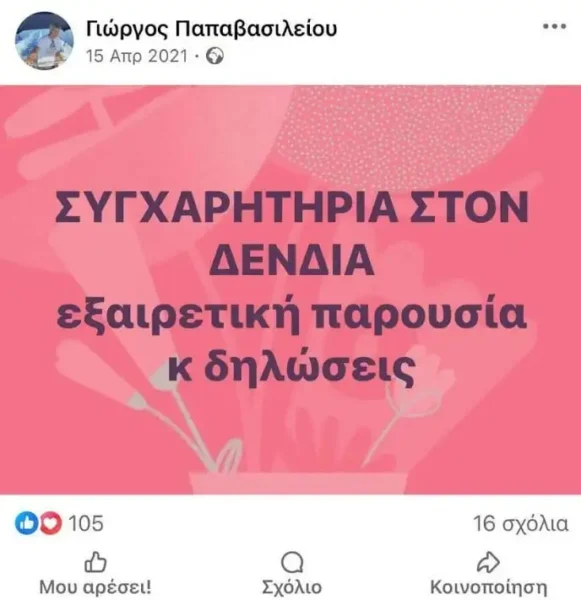 Σε μία ακόμη ανάρτηση έδινε συγχαρητήρια στο Νίκο Δένδια.