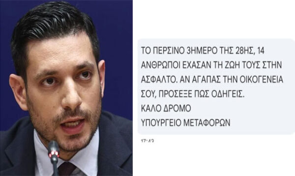 Απάντηση για το sms που στάλθηκε χθες από το υπουργείο Μεταφορών στα κινητά πολιτών για την οδική ασφάλεια ενόψει 28ης Οκτωβρίου έδωσε ο Κωνσταντίνος Κυρανάκης.