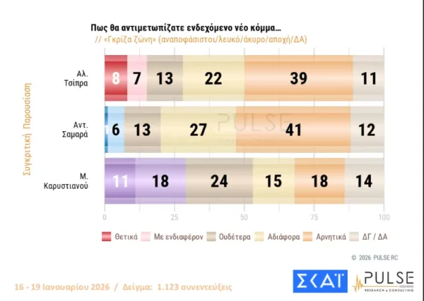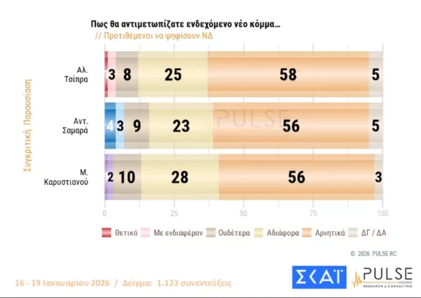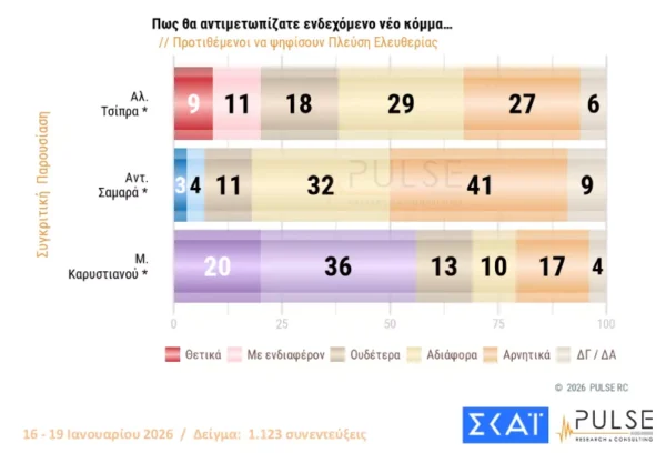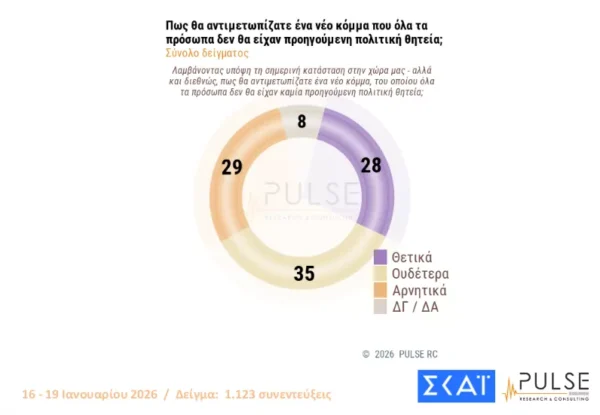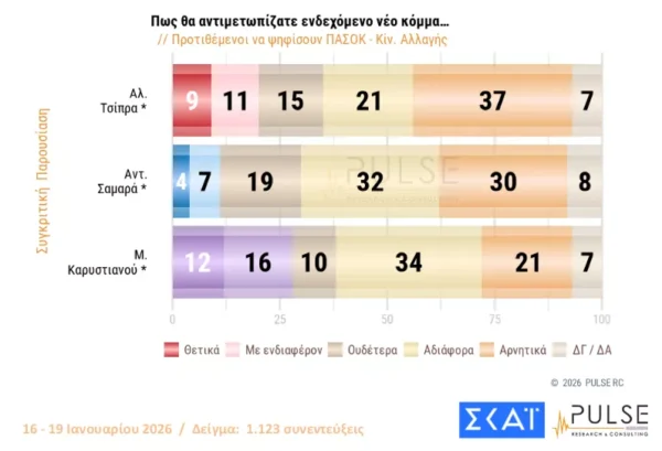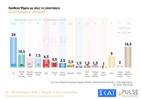 Δημοσκόπηση Pulse: Προβάδισμα 16,5 μονάδων της ΝΔ από το ΠΑΣΟΚ – Μπροστά με διαφορά η Καρυστιανού από τον Τσίπρα