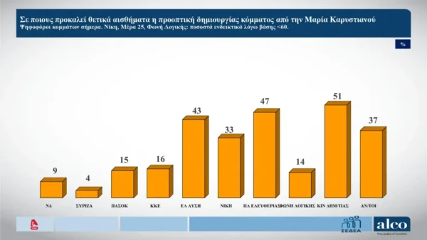 - Δημοσκόπηση Alco: Στις 13 μονάδες η διαφορά ΝΔ και ΠΑΣΟΚ – Από που αντλούν ψήφους Καρυστιανού και Τσίπρας