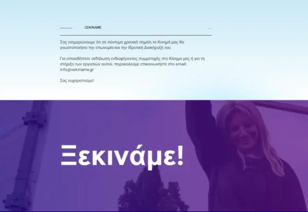 Σας ενημερώνουμε ότι σε σύντομο χρονικό σημείο το Κινημά μας θα γνωστοποιήσει την επωνυμία και την Ιδρυτική Διακήρυξή του.