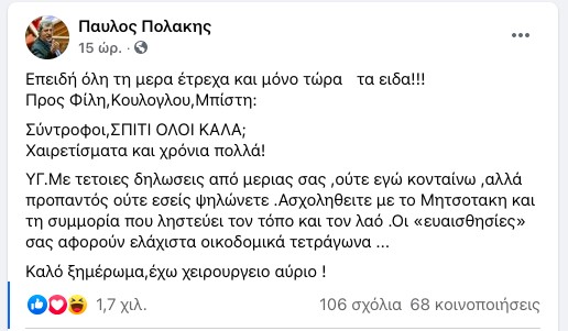 Μετά από αυτές τις διαφοροποιήσεις, ο Παύλος Πολάκης απάντησε μέσω facebook: