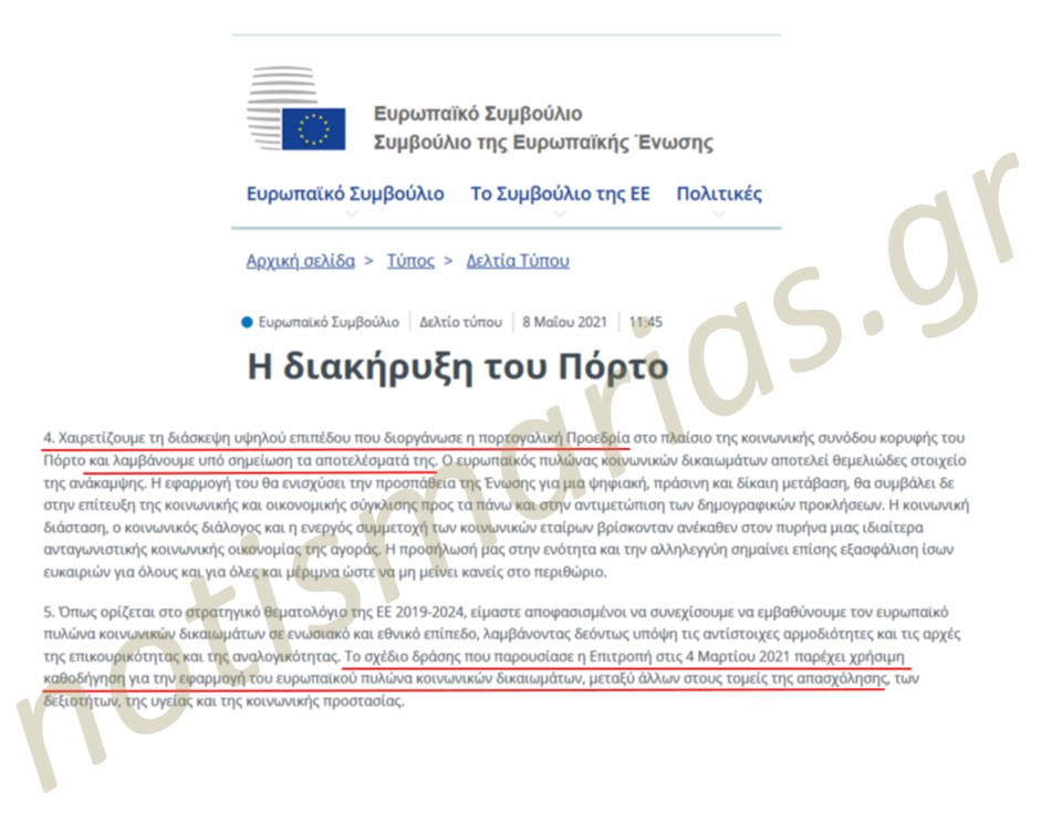 1.Από την Διακήρυξη του Πόρτο που υιοθέτησε το Ευρωπαϊκό Συμβούλιο στις 8/5/2021.