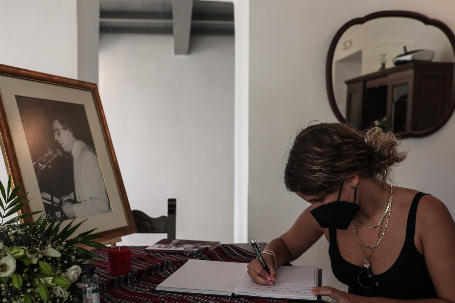 Γεμίζουν από το πρωί οι σελίδες στο βιβλίο συλλυπητηρίων στο πατρικό σπίτι του Μ. Θεοδωράκη στον Γαλατά Χανίων.