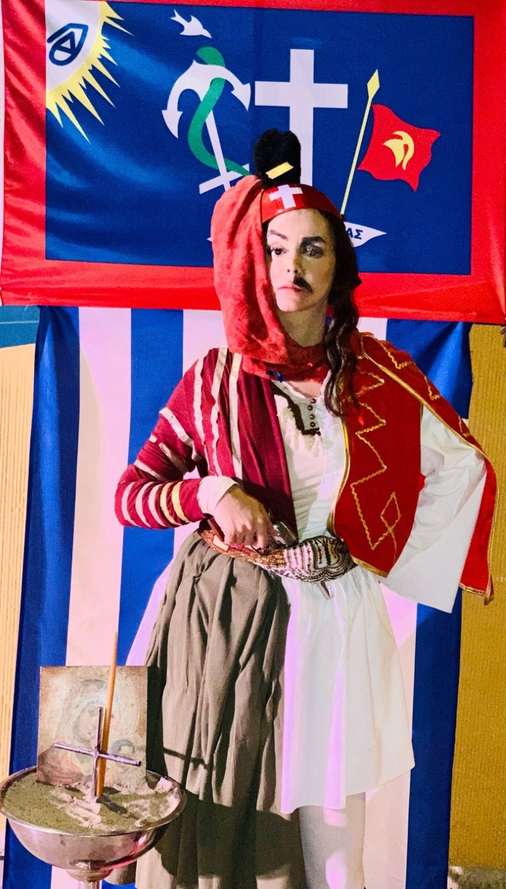 Η Λασκαρίνα, η δυναμική Μπουμπουλίνα, μια πραγματικά εκπληκτική γυναίκα, ήταν από μόνη της μια επανάσταση. Από τις κορυφαίες ηρωίδες της επανάστασης και συμπεθέρα του Κολοκοτρώνη μιλά για τον αγώνα και τις μάχες της ,την φιλική εταιρεία ,την τεράστια προσφορά της, τις σκέψεις της. Στο μονόλογό της αναλύει όλη τη διαδρομή και την προσφορά της στην επανάσταση για την απελευθέρωση του έθνους, αλλά και το άδοξο τέλος της.»