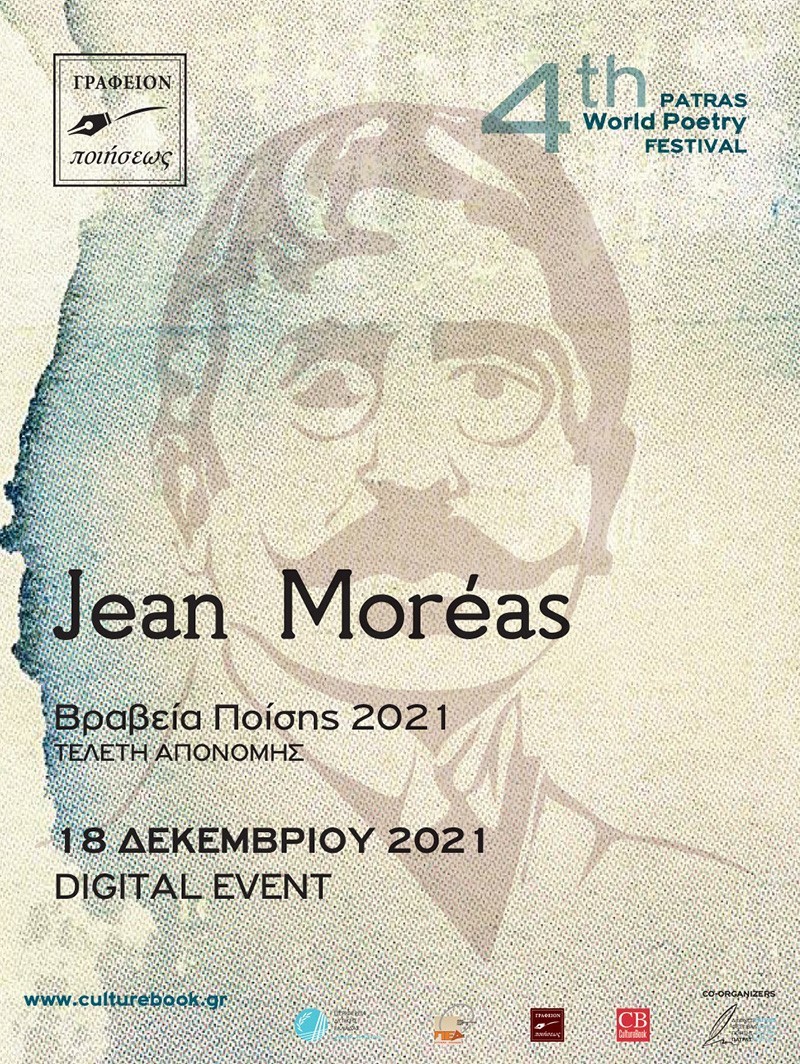 ΑΠΟΝΟΜΗ ΕΛΛΗΝΙΚΩΝ ΒΡΑΒΕΙΩΝ ΠΟΙΗΣΗΣ «Jean Moréas» για το έτος 2021: Πρόκειται για την ετήσια διοργάνωση κατά την οποία απονέμονται τα Βραβεία «Jean Moréas» για την ελληνική ποιητική τέχνη και την ελληνική ποιητική παραγωγή σε όλο της το φάσμα. Η απονομή θα πραγματοποιηθεί στο θέατρο Επίκεντρο+ με παρουσία συμμετεχόντων και κοινού*.