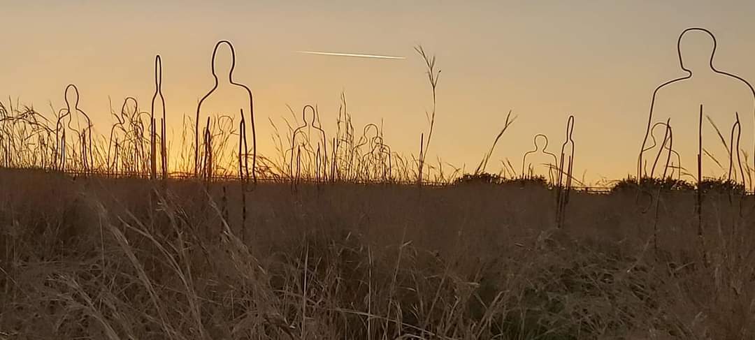 Τα 120 ανθρώπινα περιγράμματα από σίδηρο, θα μπορούσαν να είναι… φορείς αξιών, στο μεταλλικό τους περίγραμμα ενυπάρχει η υπαρξιακή αγωνία του ανθρώπου για ελευθερία και η σιδερένια του θέληση να στέκεται όρθιος σε κάθε δυσκολία. Η απουσία συγκεκριμένου προσώπου είναι επιλογή που ενθαρρύνει την πλήρωση του κενού με πορτρέτα ηρώων της κάθε ημέρας, εποχής και επανάστασης.